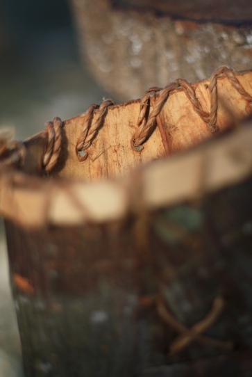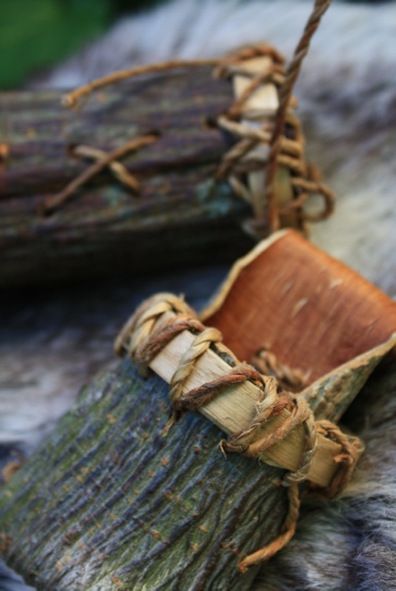 Cut, shape, fold and stitch Elm bark to make a container/pot.