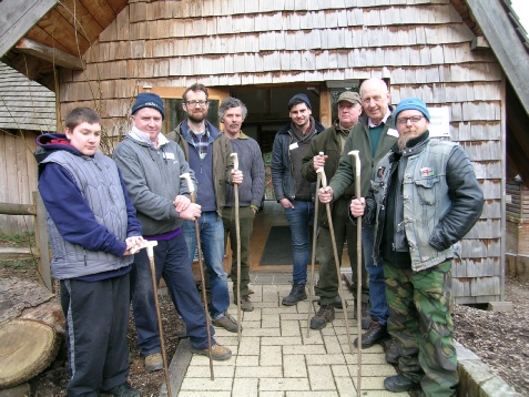 Everyone who attends learns how to straighten a stick, make a "proper" traditional peg joint to fix the handle to the shank and use simple tools to work the handle and shank to a finished stage.